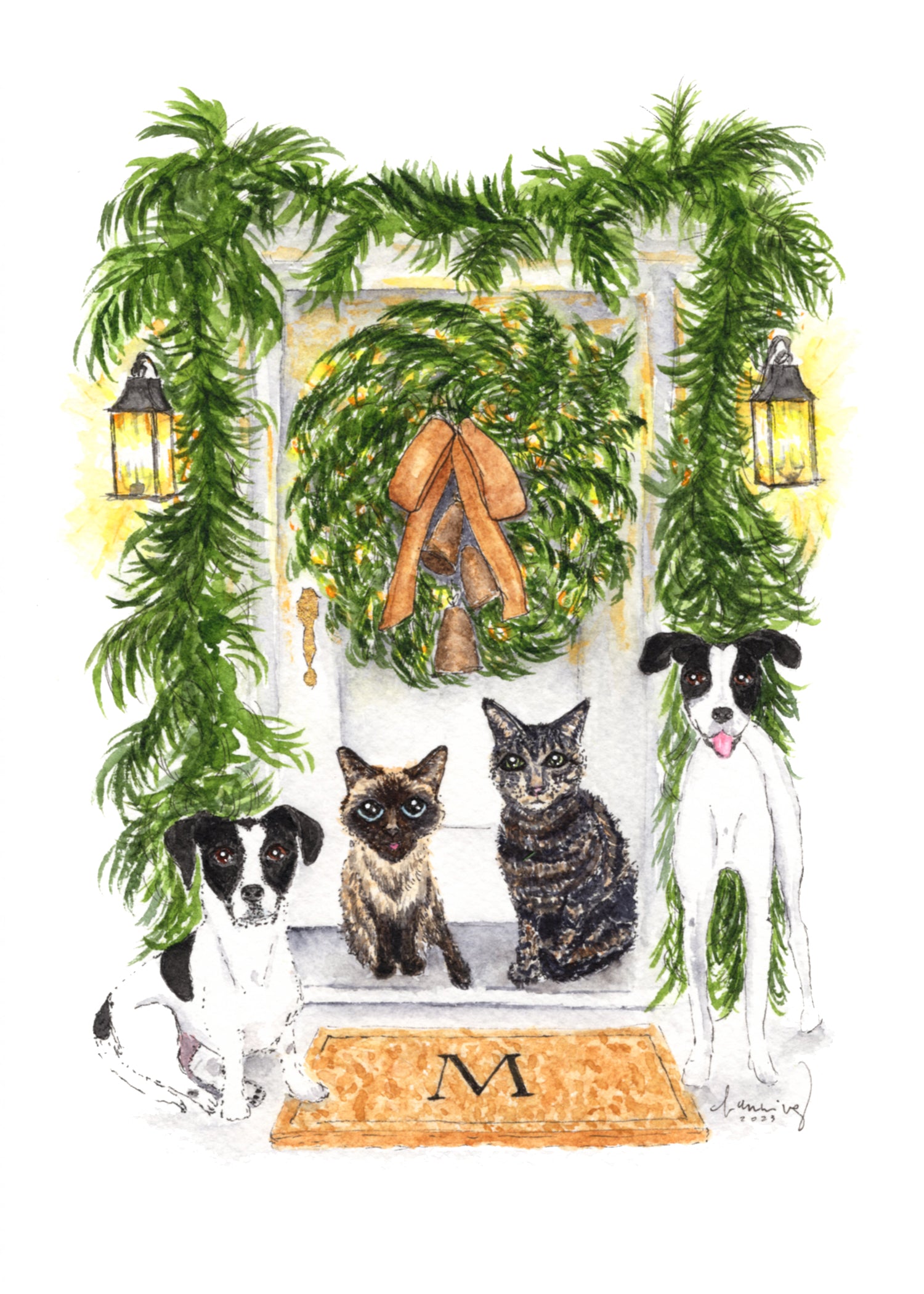 5" x 7" custom, print-ready, digital Christmas/Hanukkah/Thanksgiving/Holiday card art - can be resized to your choice of card size.