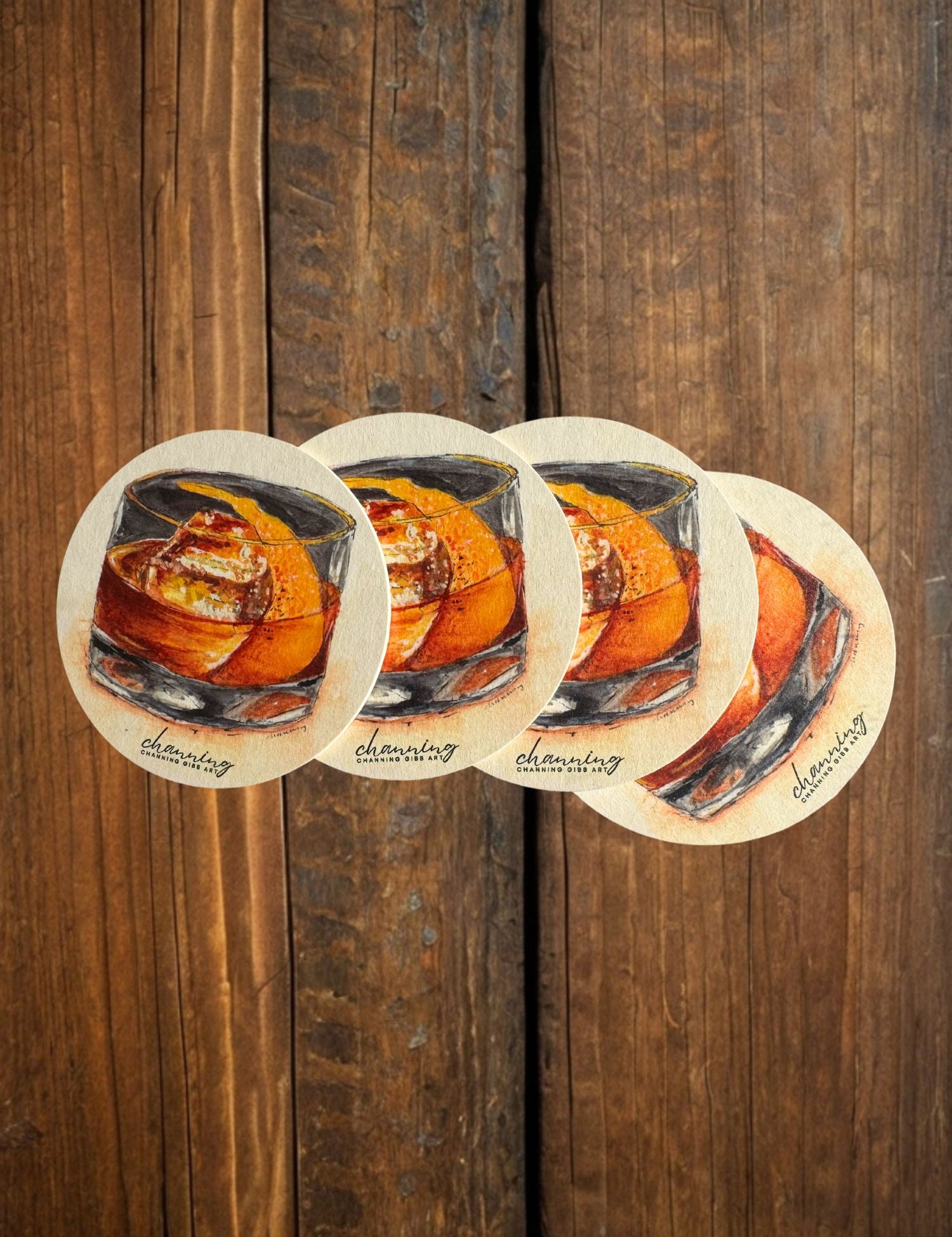 Perfect for casual entertaining, featuring original art of an old fashioned cocktail.